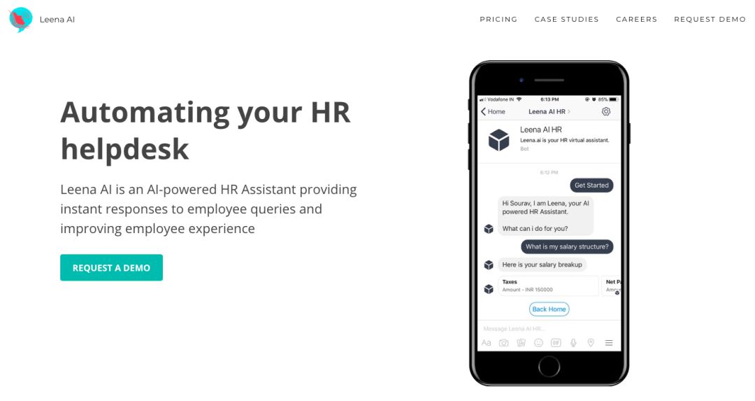 假如你在一家大公司工作,当你想了解休假、医保等问题时,你会发邮件或打电话联系 HR ,等待答复,而 Leena AI 通过构建 HR 智能聊天助手实时回答员工的提问来改变这种状况。它是目前唯一一款由人工智能平台驱动的 HR 虚拟助理,经 12,000 家企业上千万的会话数据训练而成,拥有出色的自然语言处理能力。