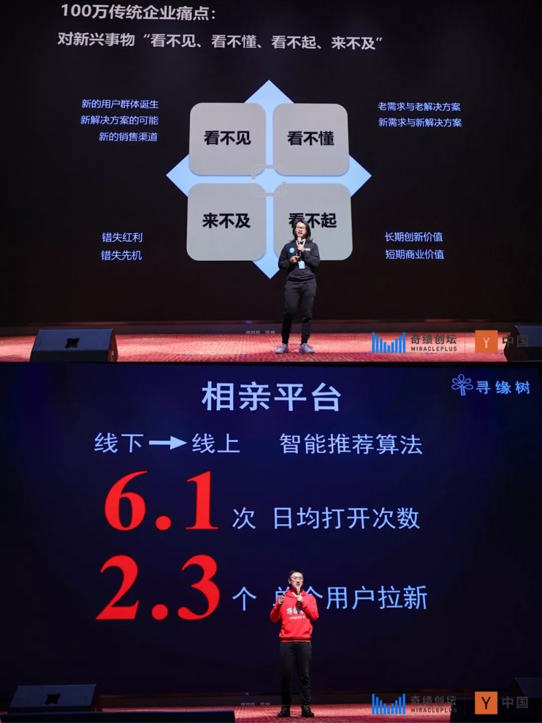 为了帮助投资人和创业者快速找到IFF(Investor-Founder-Fit),我们推出了「奇绩创坛小程序」。当天注册的900多位投资人可以看到每个项目的简介,点赞感兴趣的项目,获得创始人的联系方式。同时,这些数据会在中台自动整理后反馈给对应项目的创始人,让他们看到对自己项目感兴趣的投资人。这些实时生成的数据帮助我们大大地提高了匹配的效率和准确度。