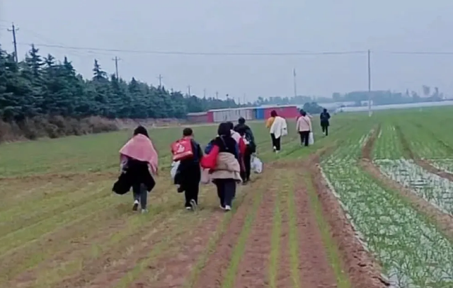 画面中,成群结队的年轻人拉着行李箱,背着生活用品,在路上徒步前行——从城市的水泥道路到乡村泥路甚至田野。与这些画面一起传播的,还有沿途疑似当地村民为徒步的年轻人提供矿泉水、馒头等生活物资的场景。