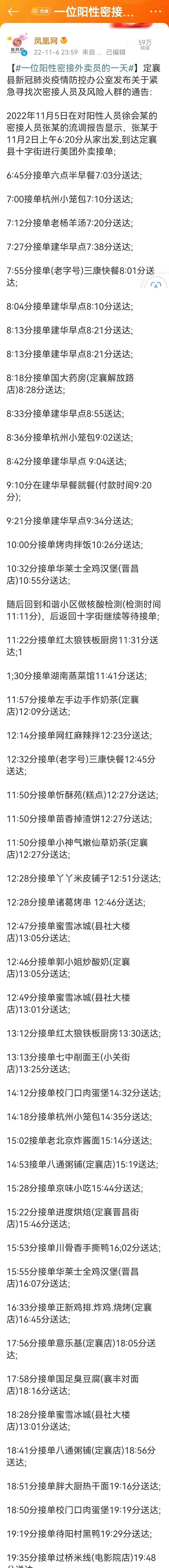 这则通知中的密接者是一名外卖员张某,流调报告显示,他早上6:20从家出发,工作到晚上10:53,一天工作了17个小时送了65单,期间只吃了一次饭,做了一次核酸检测。