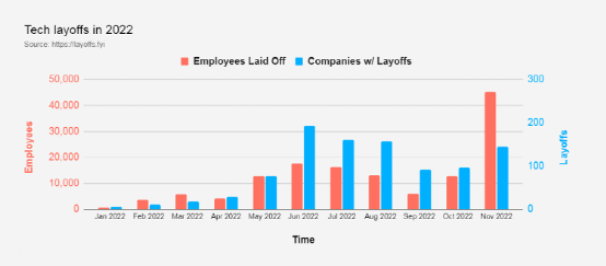 11月的裁员风暴始于推特。当月初,推特一次性辞退了超过半数员工。