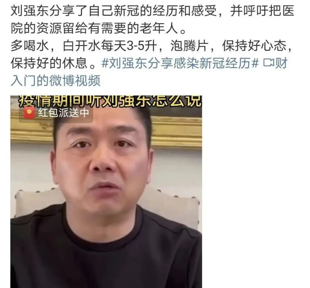 京东老板刘强东,非常接地气儿地分享了全家人抗 " 阳 " 的经历: