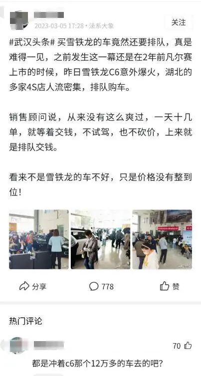 近日,湖北省的汽车4S店火了,被网友调侃买车像抢菜市场。