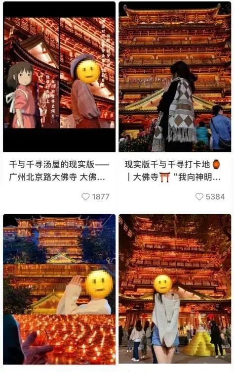广州的大佛寺直接在社交网络上和电影《千与千寻》产生了联系,被网友亲切称为“现实版《千与千寻》打卡地”。