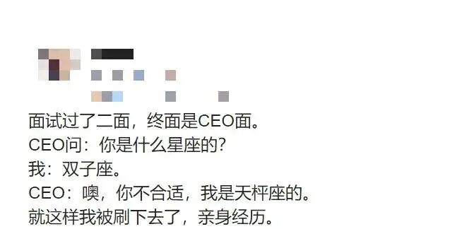 前几天还看到一条帖子,居然能有CEO因为星座把候选人刷下去。