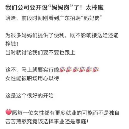 有公司在接受采访时透露,设置“妈妈岗”时,确是秉持“做公益”的心情。