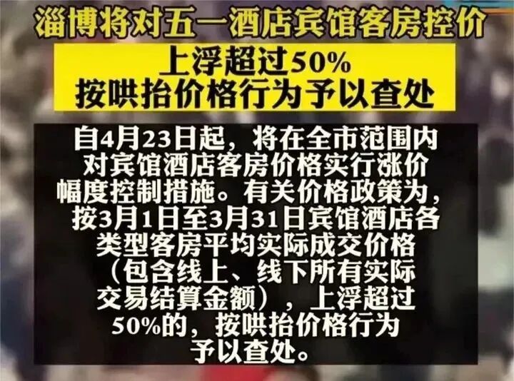 规定自4月23日起,对客房的价格涨幅进行管控,涨幅超过50%的按照鸿哄抬物价予以查处!