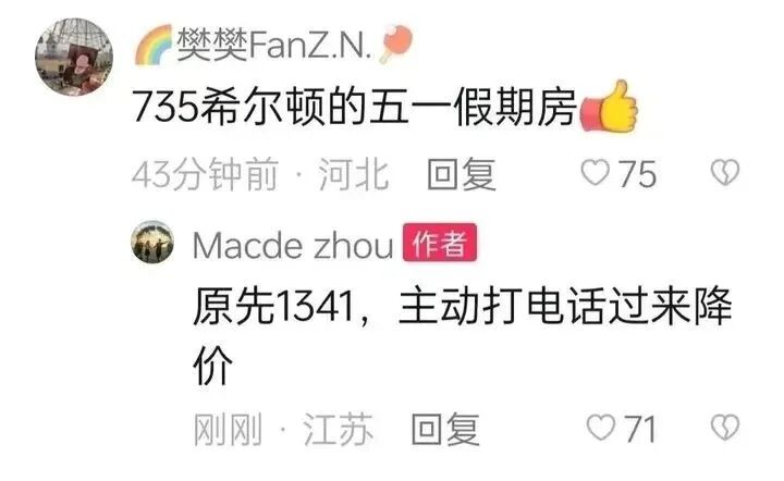 有网友表示:别说五一了,就这个酒店,放在平时三位数都是很难的!