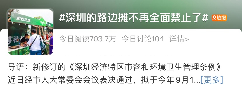 不少网友在微博上点评称:“深圳不再全面禁止路边摊,淄博的烟火气,一线城市也该有!”