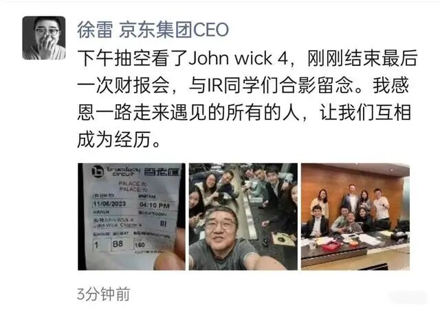 徐雷在京东2023年一季度财报电话会上回应了退休一事,他称将把更多的时间花在家人身上。