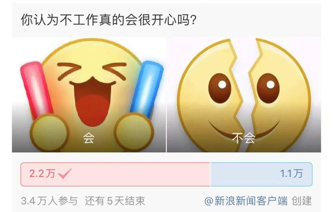 结果很明显,大部分人都认为,不工作会让人更开心。