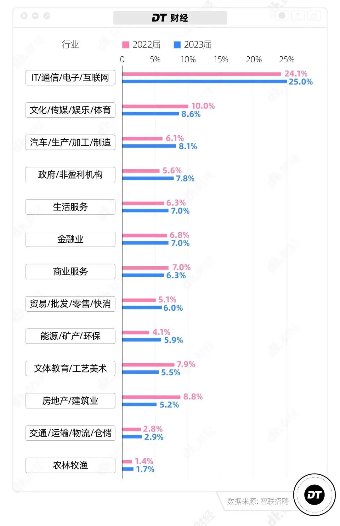 互联网仍然是薪资与前景最看好的行业,没有受大厂裁员等传闻的过多影响,应届生对IT行业的期望也相对稍有回暖。