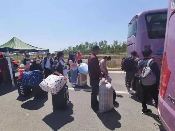在郑州某高速公路收费口下车的求职者,可以免费乘坐富士康大巴至厂区报道。