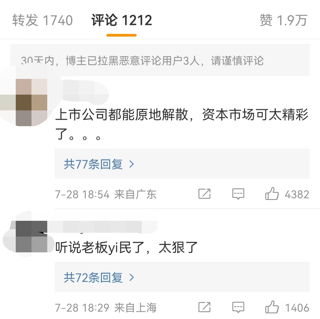 一年收入超70亿的上市公司,说没就没了,网友在微博发出评论:“上市公司都能原地解散,资本市场可太精彩了。”