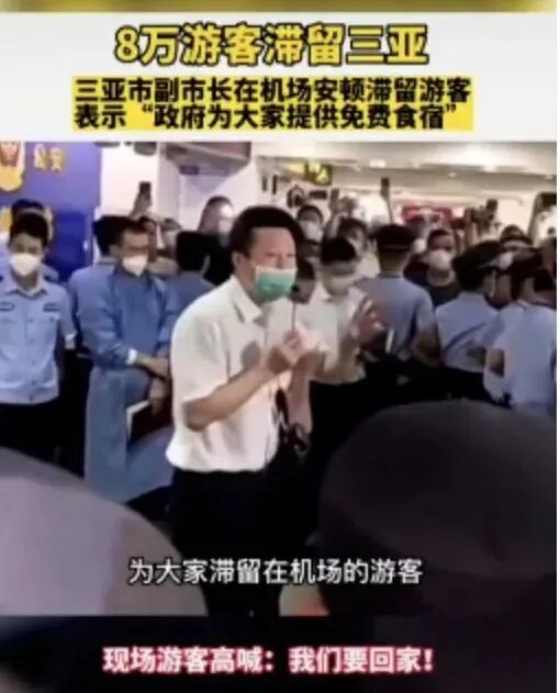 很多人到了机场发现无法登记,整个三亚约8万人被滞留原地。