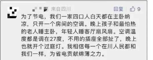 有全家只开一个空调的。“因为我知道现在有的电,都是政府和企业单位想尽办法省给我们的。”