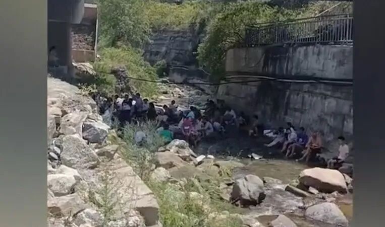 更夸张的是,持续性的高温天气,把隔壁重庆嘉陵江的水都抽干了。
