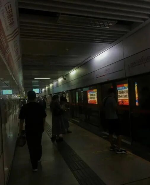地铁站许多灯关了,一下子变得幽暗昏黄。