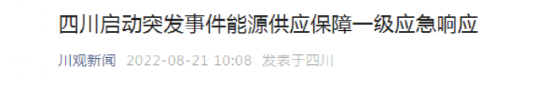 在8月21日,四川启动了突发事件能源供应保障一级应急响应。