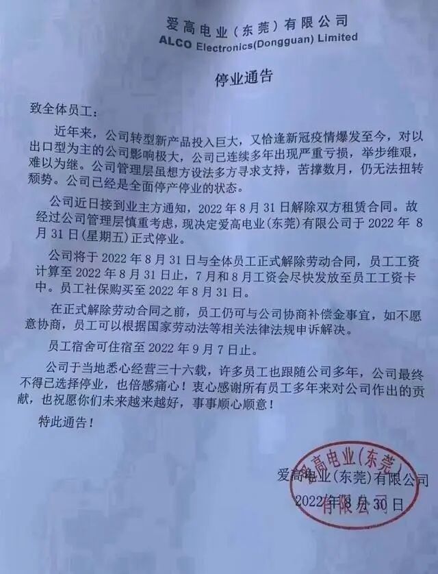 东莞万人大厂停业