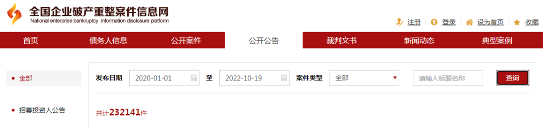 在《全国企业破产重整案件信息网》上,查询疫情至今不到三年的企业破产案件,数量约23万件。