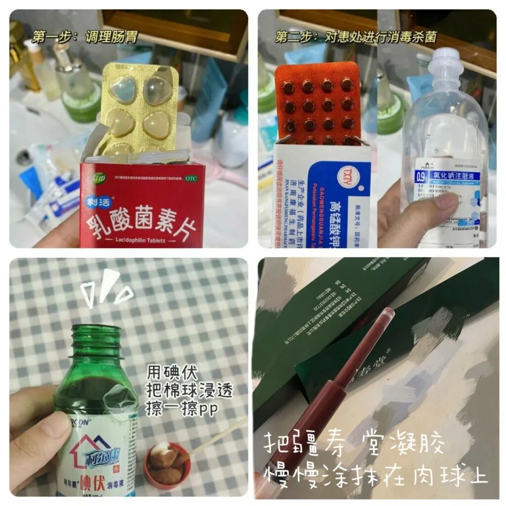 专家回答:红霉素、碘伏等均为生活常见消炎、杀菌药剂。对于痔疮疾病来说,这些药剂的合理运用能够在短时间内辅助改善痔疮瘙痒以及肿胀等症状。想要用其彻底根除顽固肉球,这是不符合临床治疗规律的,这一点需要大家格外注意。