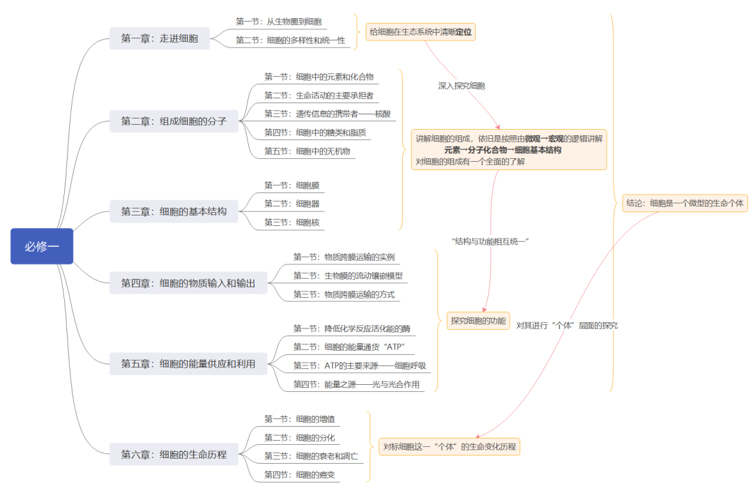 生物这门学科其实是有着很清晰的逻辑链,大到每一本书,小到每一个章节、每一个小节,它们之间都有很强的关联性和逻辑性。