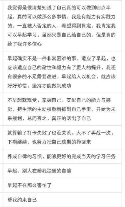 同时强调一点,正如《早睡早起全攻略》里面提到的,早起不是为了多工作一个小时,而是为了用最好的状态开始清醒的17个小时。你们应该充分考虑自己的学习生活情况以选定合适的起床时间,没必要像我一样刻意追求过于极限早起时间(比如4:30),永远以高效学习为出发点选择适合自己的时间点才是关键。