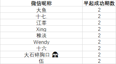 从第十一期开始设置早起总榜,每一期成功达到早起人员都会记录在早起成功榜,每四个月一统计,成功完成早起期数最多的前十五人(只计算成功期数),均可获得树成林专属周边一份+树成林早起专属证书。