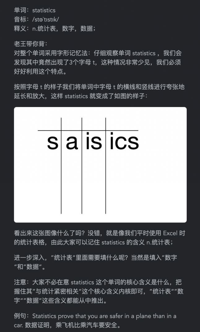 说白了,就是你把联想记忆法、图像记忆法、发散记忆法、对比记忆法、词根词缀记忆法、谐音记忆法、场景记忆法等所有你想用好但用不好的方法留给会用的我去用,你把所有不会背的单词交给我去背给你看。