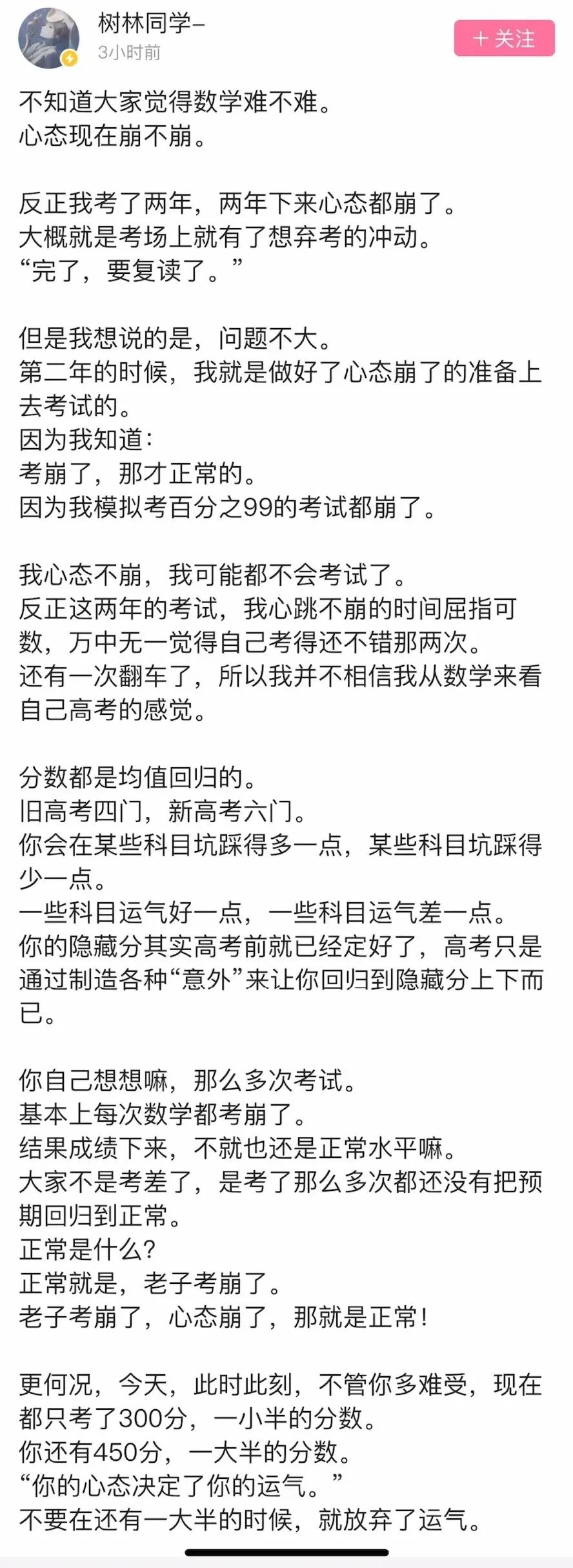 “数学考完心态不崩,我感觉我就有点不会考了~”