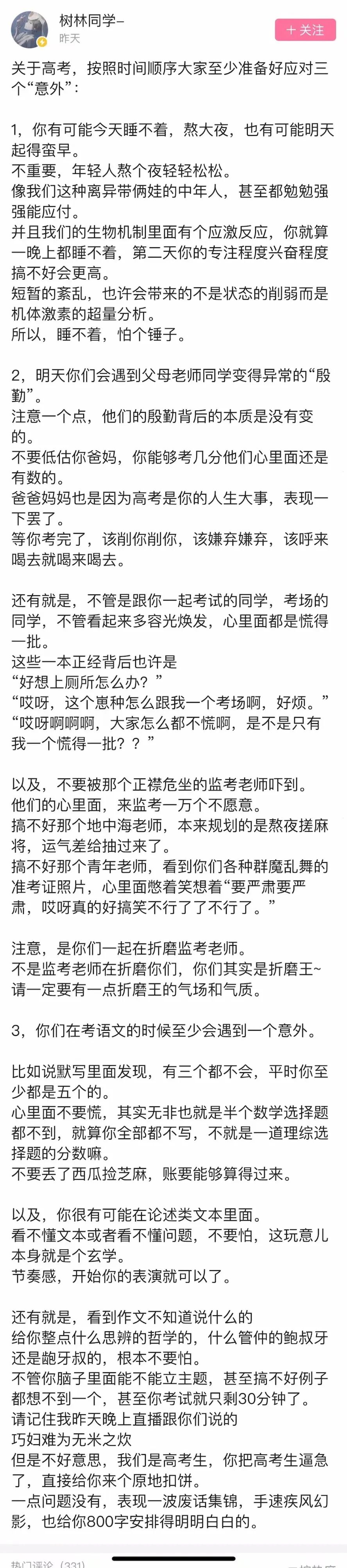 我们直接都快不做高考了,树成林这个公众号,都直接变成大学号了。