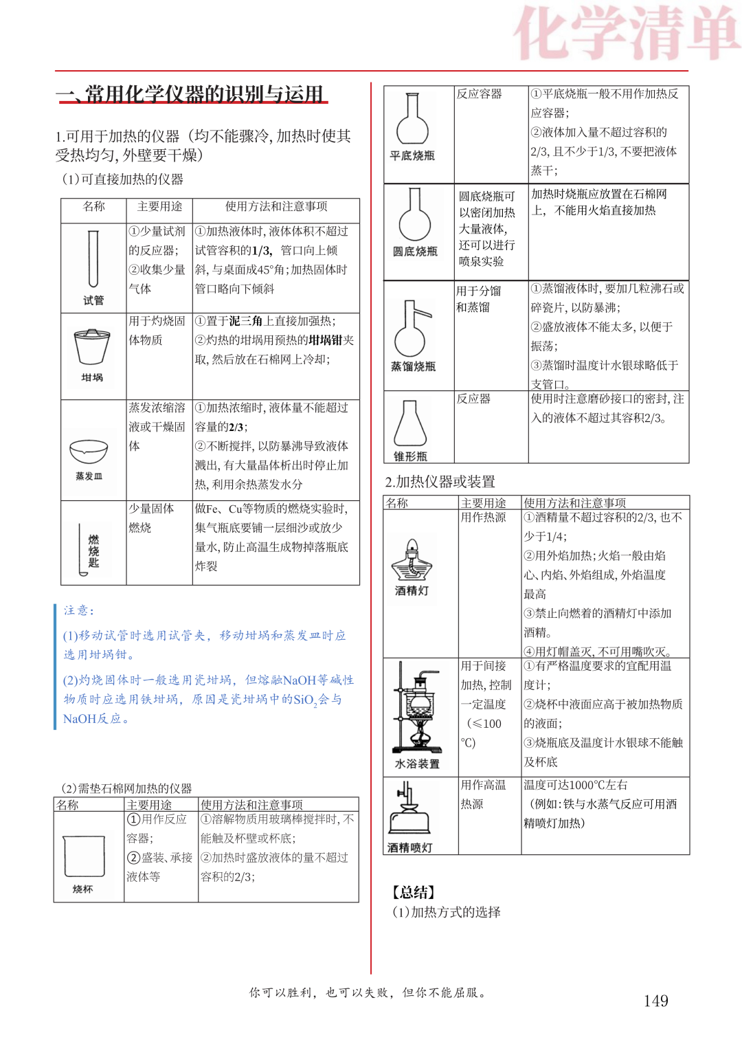 化学需要横向和纵向辨析的物质,知识点较多,所以本书有相当一部分内容以表格的方式进行对比总结,便于学生更好的辨析相似知识点以及物质,同时清单中还提供关于某一物质的知识图谱,便于学生构建这一物质与其他物质的关联性,便于学生了解知识脉络。
