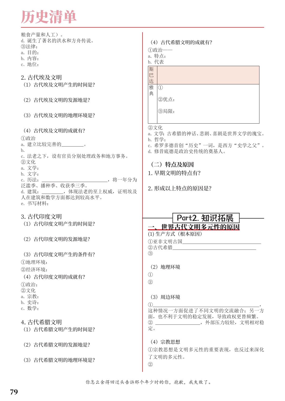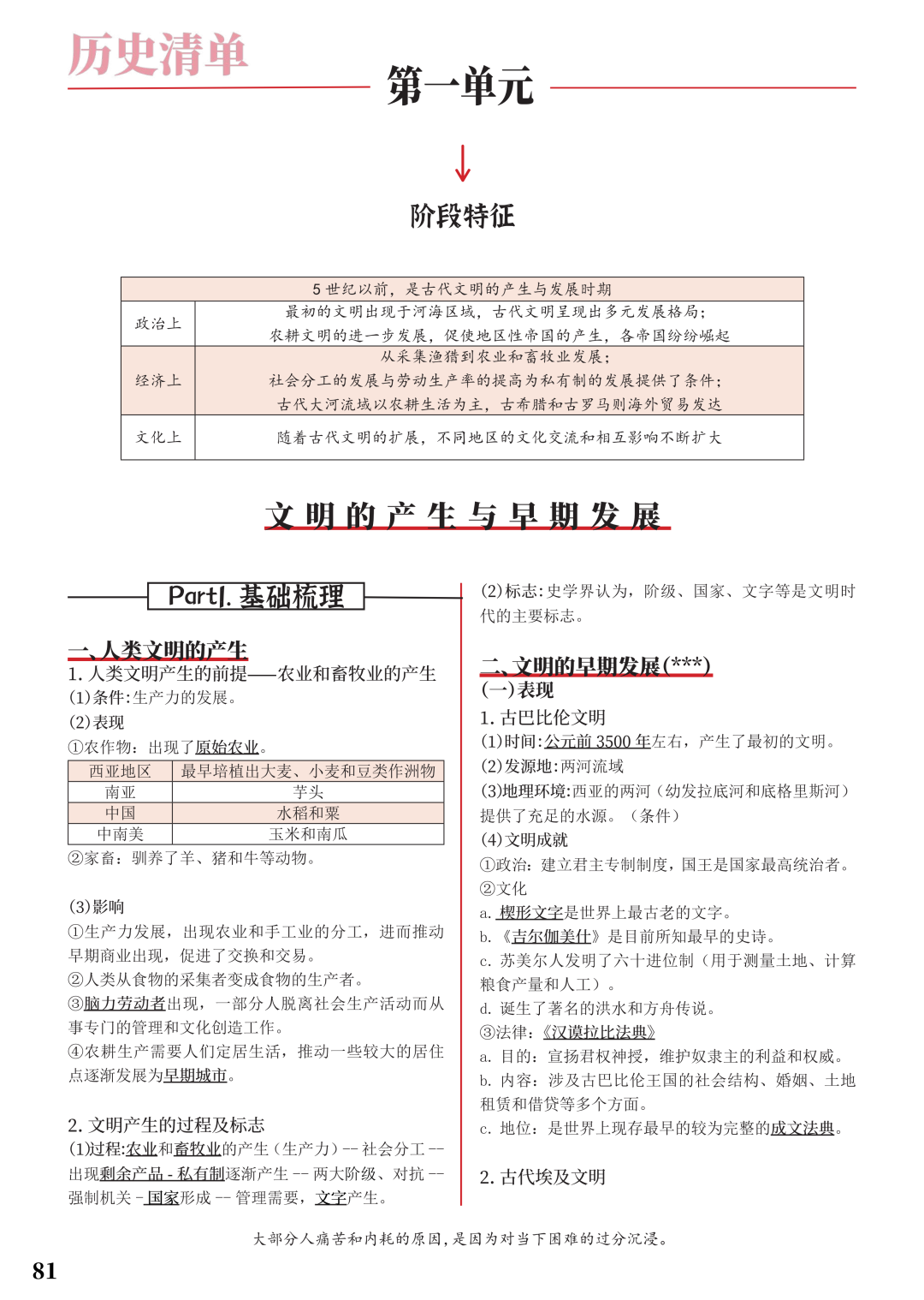 历史清单则用Part1梳理基础知识,Part2在Part1的基础上拓展重难点,帮助不同分段的学生找准定位,明确努力方向。