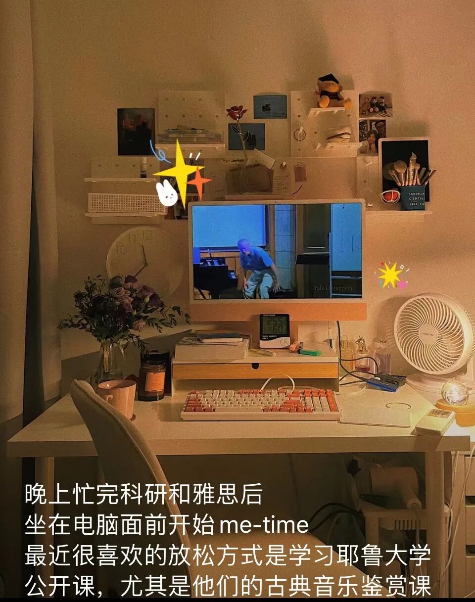 科研结束后到了晚上,我会自己找一些公开课来看。比如古典音乐鉴赏,圣经旧约解析等。