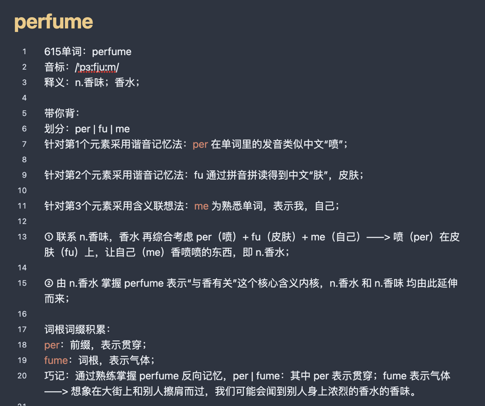向“单词达人”请教,他们能做的顶多也就是挑选几个有代表性的单词再次向你展示通过记忆方法“巧妙”背单词的思维过程。可这种零星的展示本质上和词汇书仅挑5%的词汇作为示例讲解记忆方法没有区别。