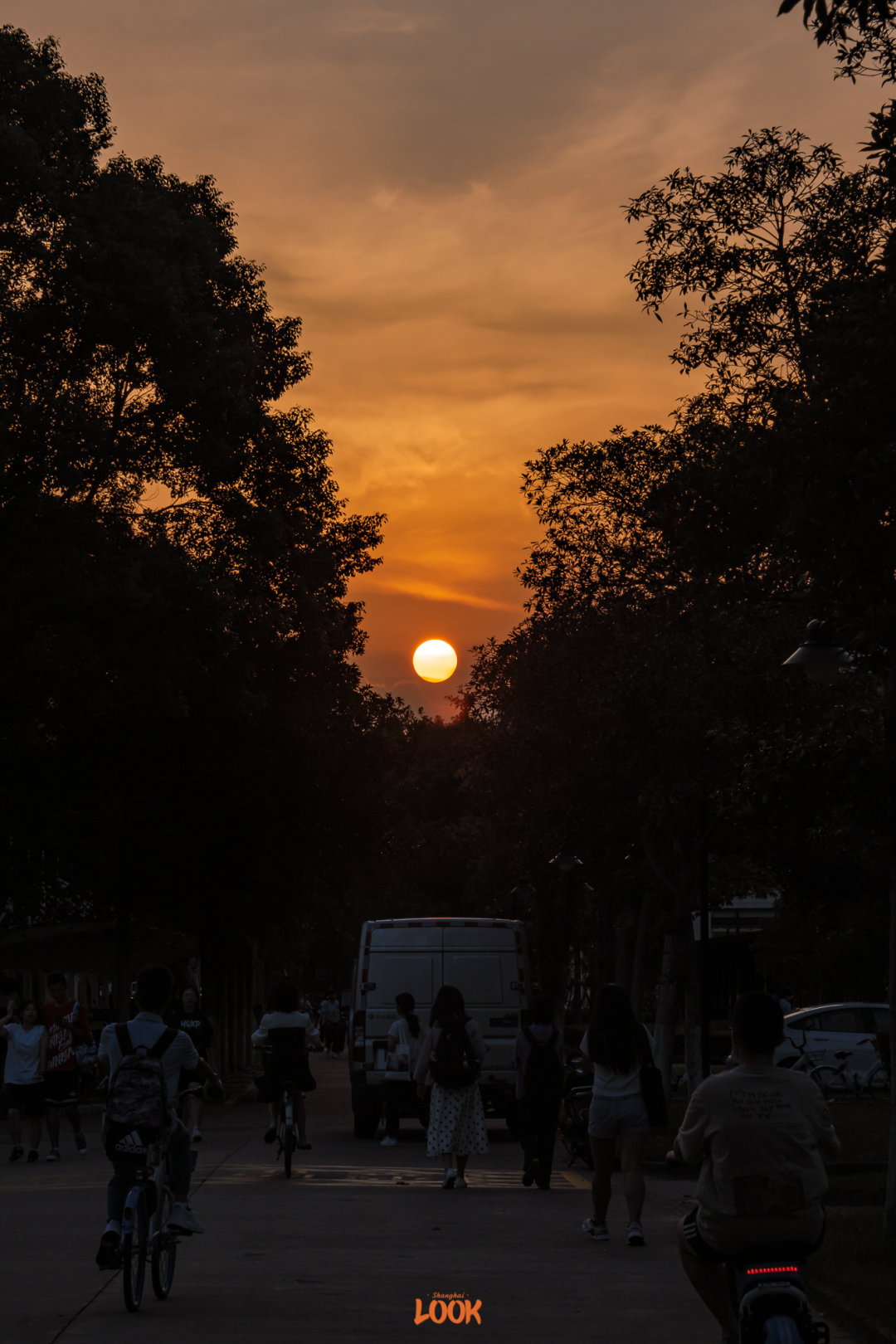 落日时分,第五教学楼楼顶便是上外的宝藏天台