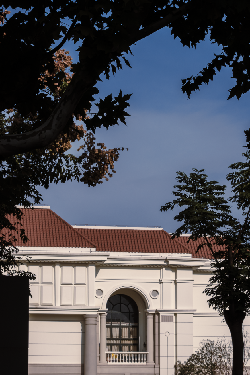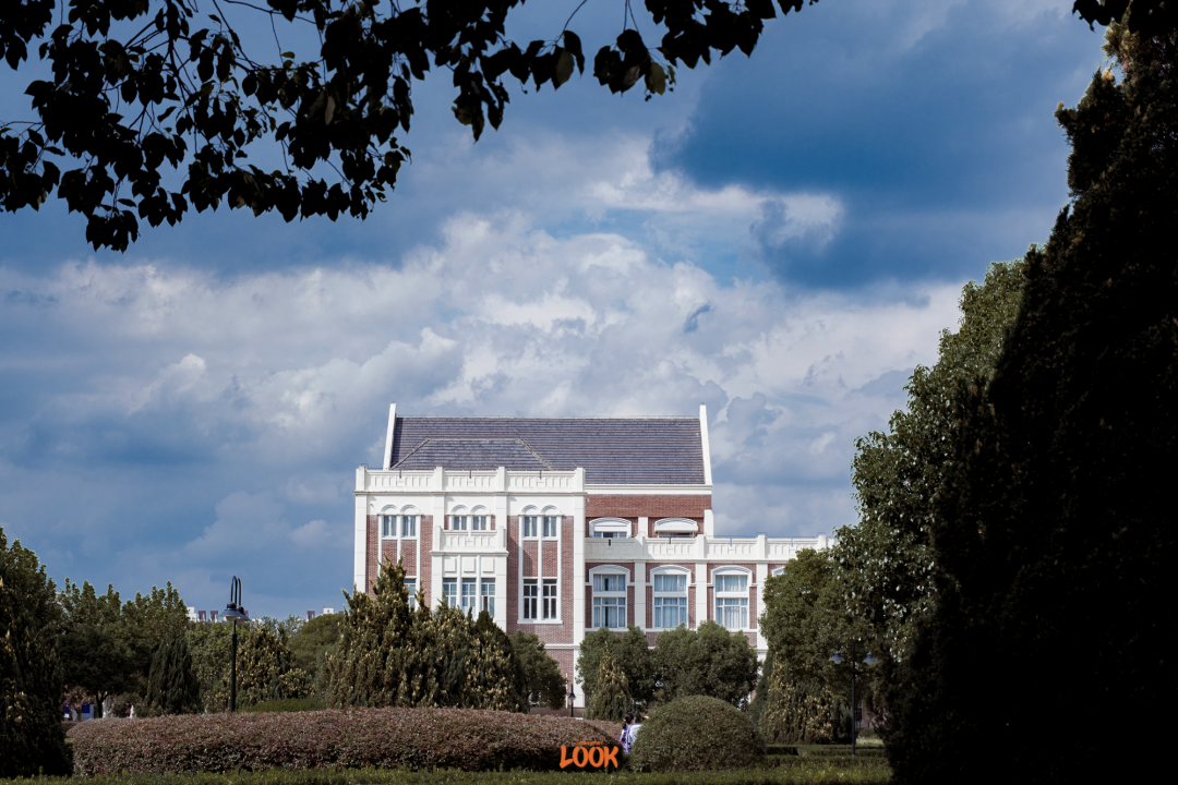 大片平铺开的绿、茂盛的山丘草坪、安静沐浴阳光的欧风教学楼,身在上海外国语大学,就像走进一本童话故事书,每个局部都是一幅笔触悠哉的和煦小画。