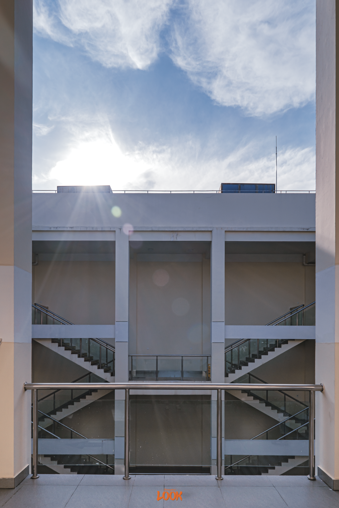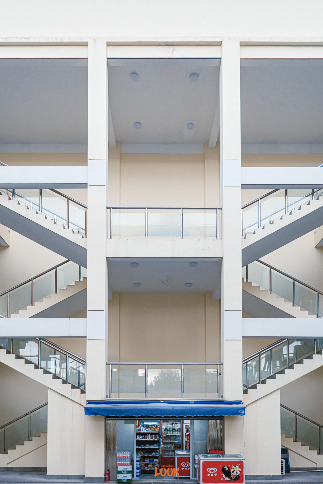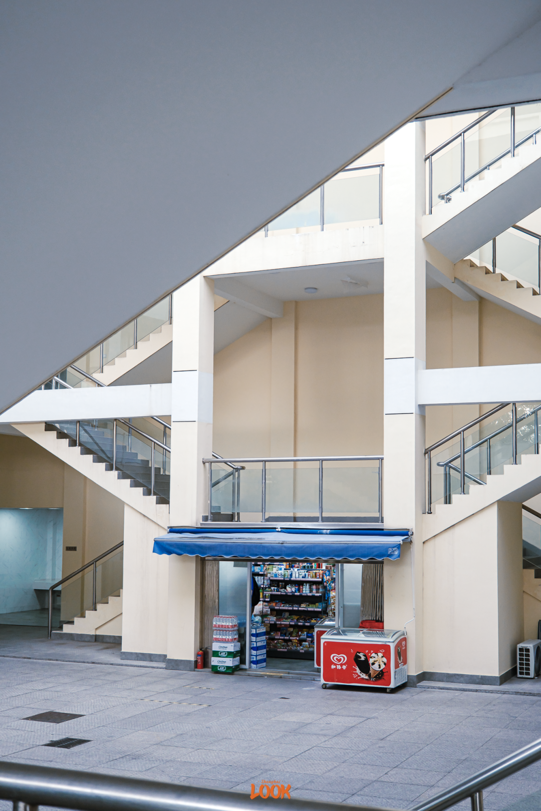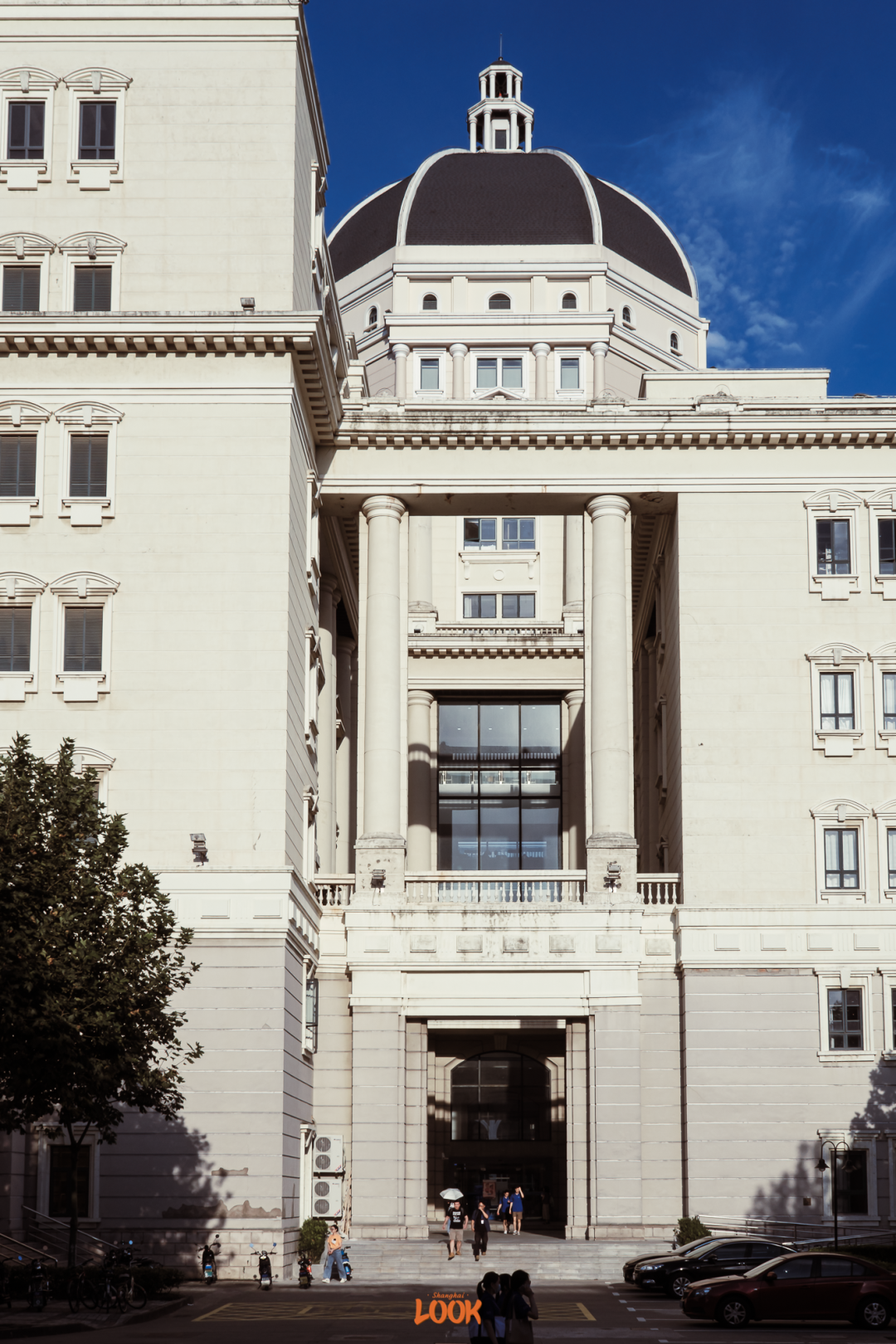 上外的图书馆,是一座很有细节的建筑,鹅黄色的外墙在阳光下泛着柔和的光。在上外,图书馆不仅可以自习,还可以在中央大厅看到大声练口语的同学。