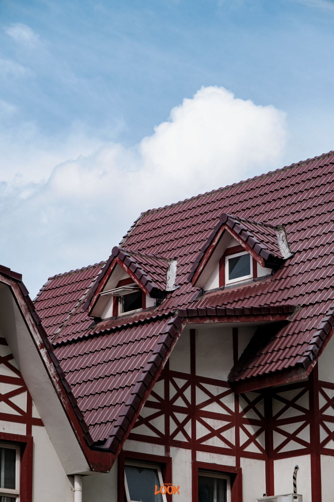 "眼皮耷拉,看着好像有点困的红瓦顶别墅"