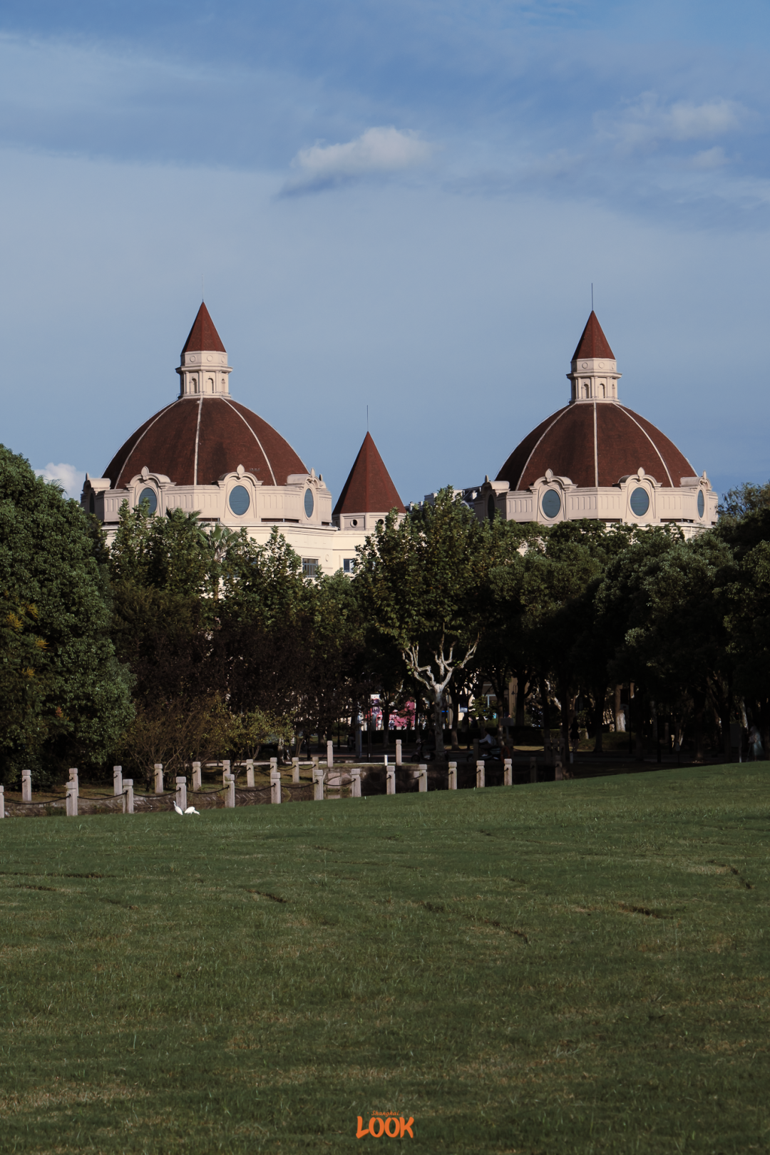 上外的吉祥物,是两栋赭红色的圆顶建筑