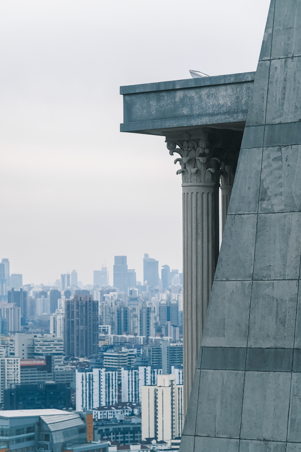 高大伟岸的光华楼,容易引起四周强烈的空气对流现象,名曰:光华妖风。 迎着妖风向上攀登 乘坐电梯直达30层楼顶,便可以感受到高处眺望带来的莫名感动,高楼、高架以及植被繁茂的复旦南区近在眼前。