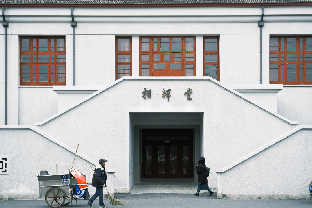 相辉堂的故事至今已流传了近百年:青瓦白砖、红色窗格,名称分别取自复旦创始人马相伯与建设者李登辉,相辉堂这座建筑的历史意义,对复旦来说是更为弥足珍贵的。