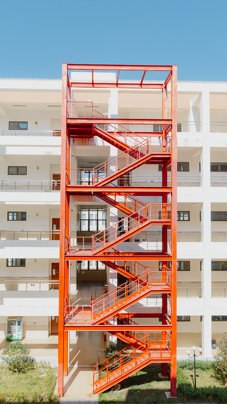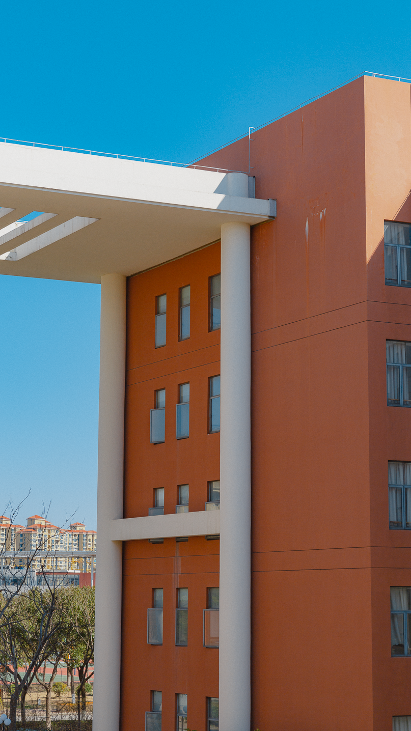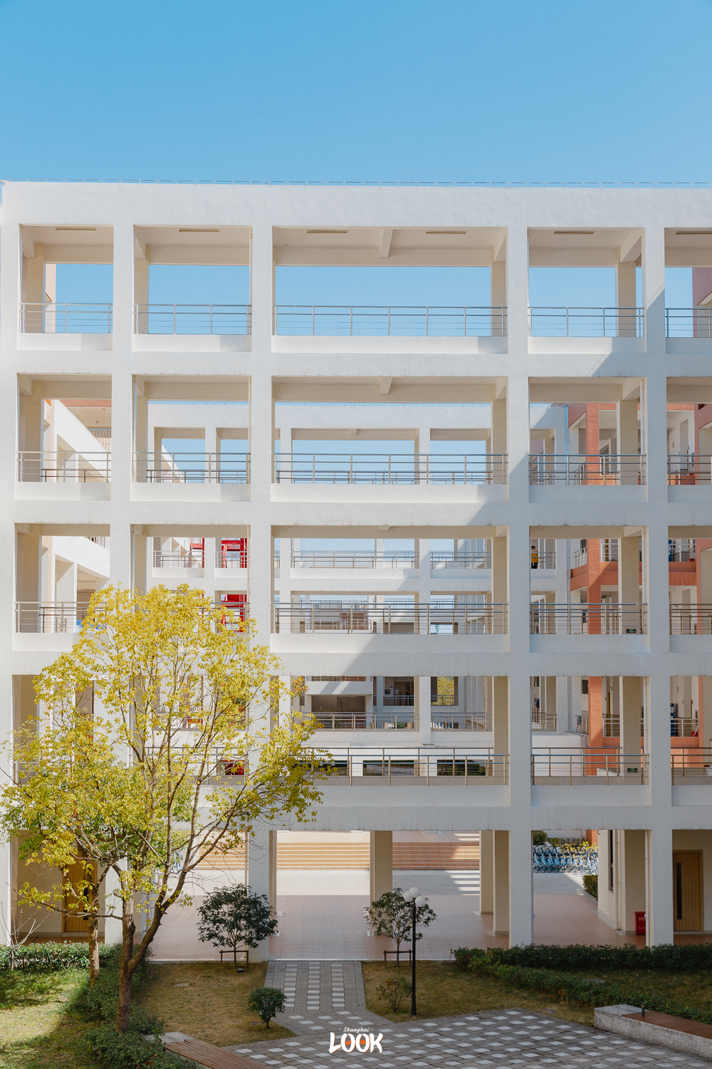 在华理,万物讲究方方正正,纵横相接。整个奉贤校区就是一个大矩形,校园建筑像一个个方块盒子,取名也十分严谨。