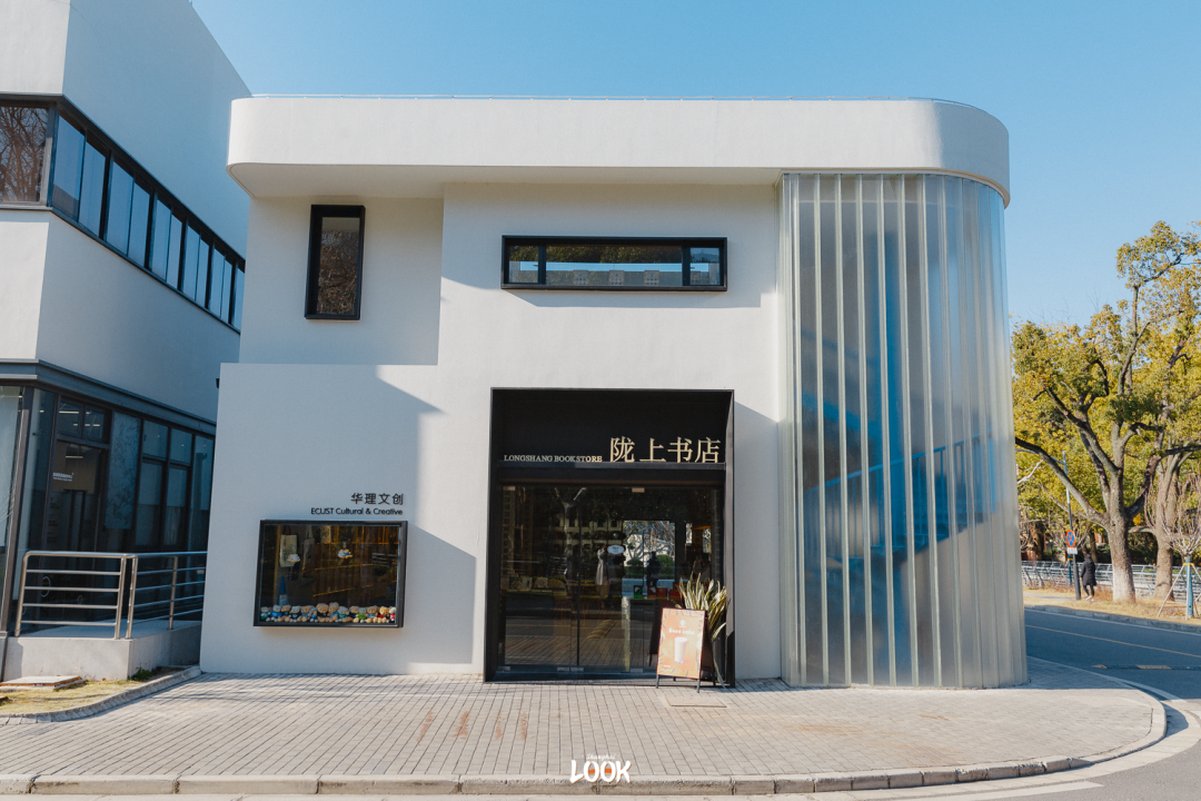 去年新开的陇上书店(晨园店),落座于徐汇校区晨园。拥有纯白色和柔和转角的外观,室内的梯、墙、顶、窗,造就了一个光的容器。