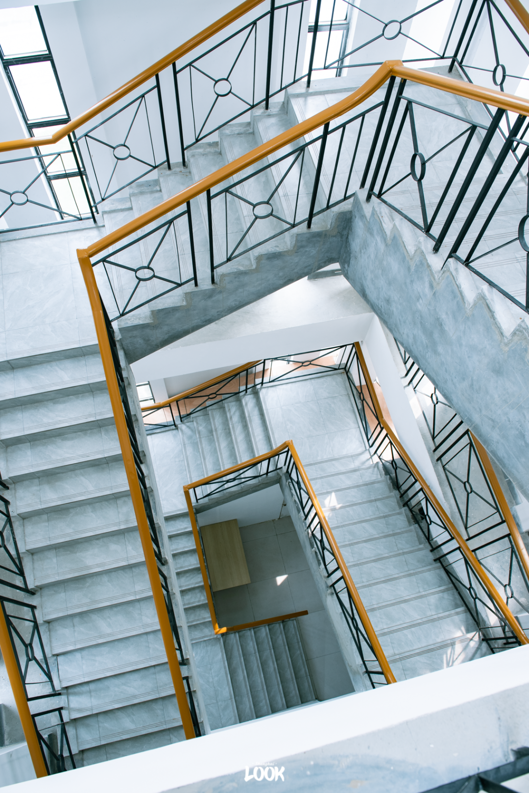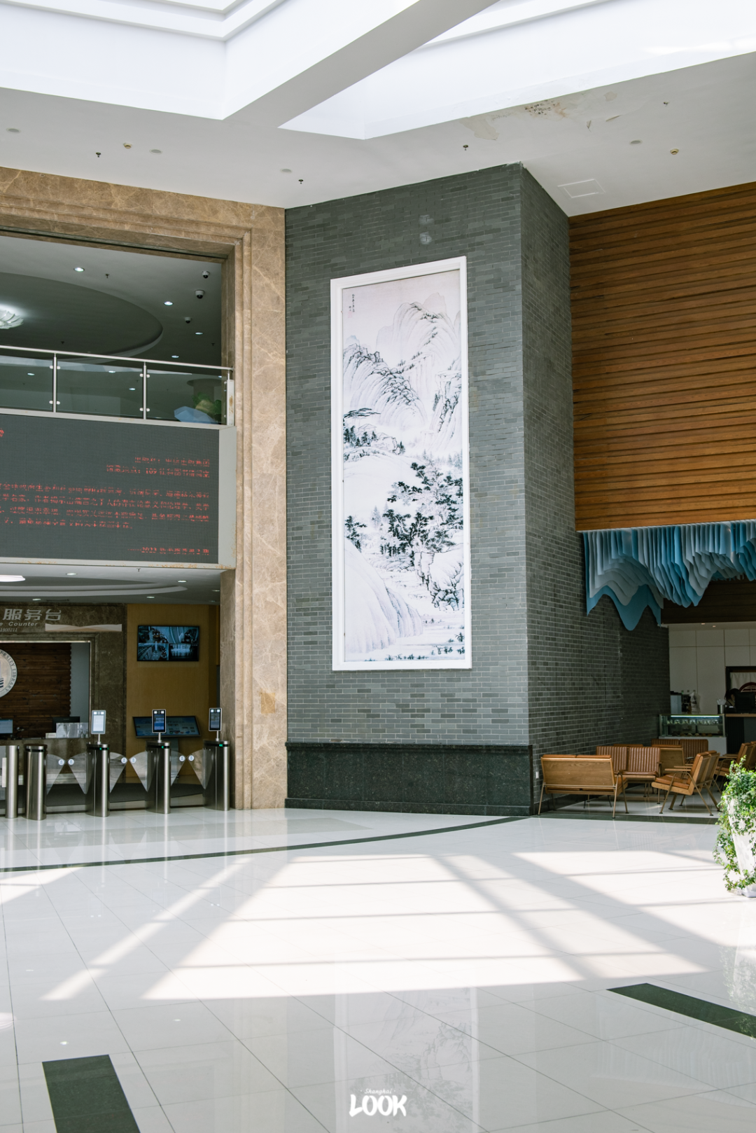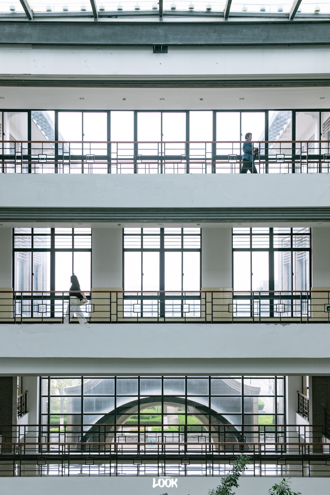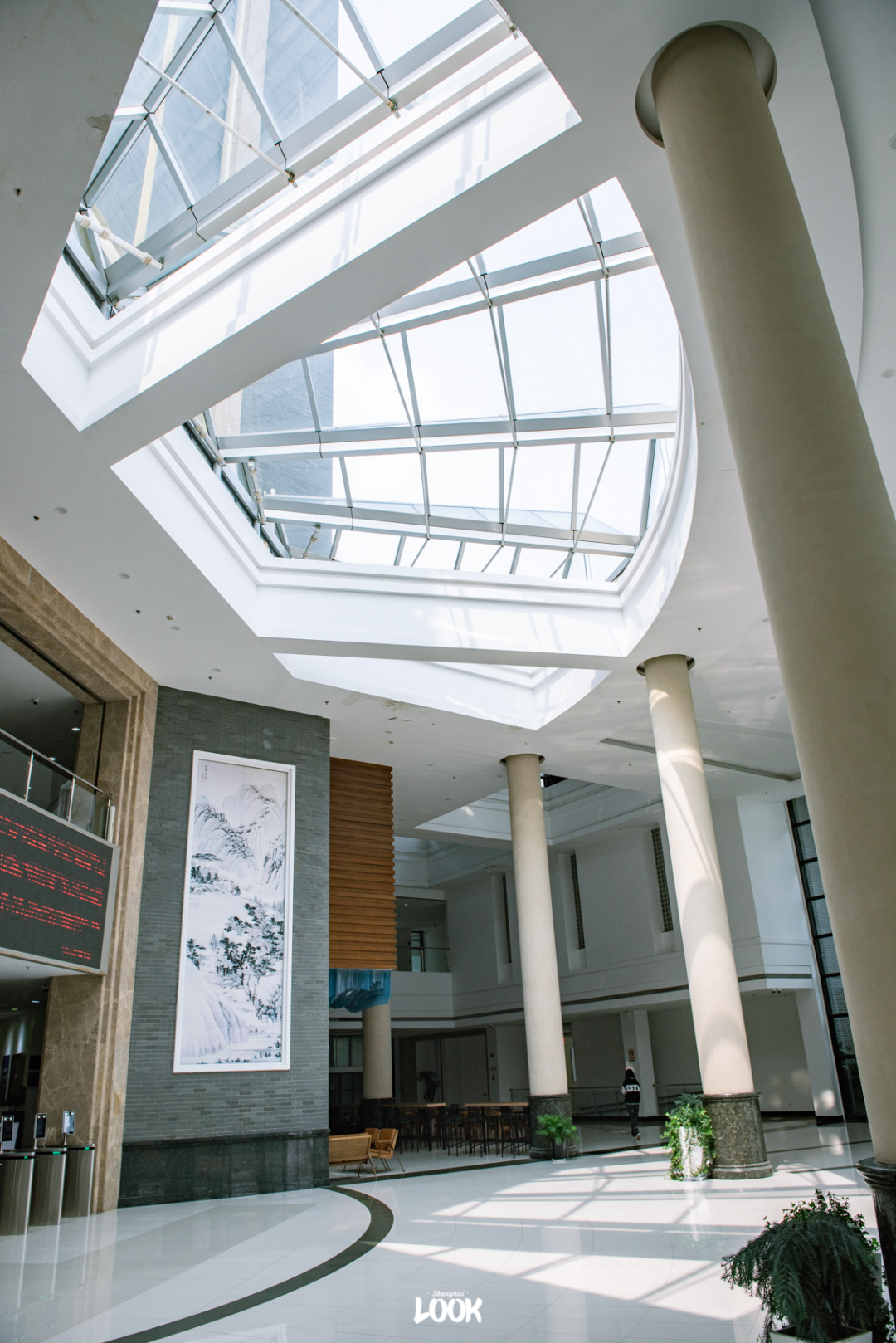 天气好时,阳光在一楼中庭倾泻而下,倒映出扇形天窗。