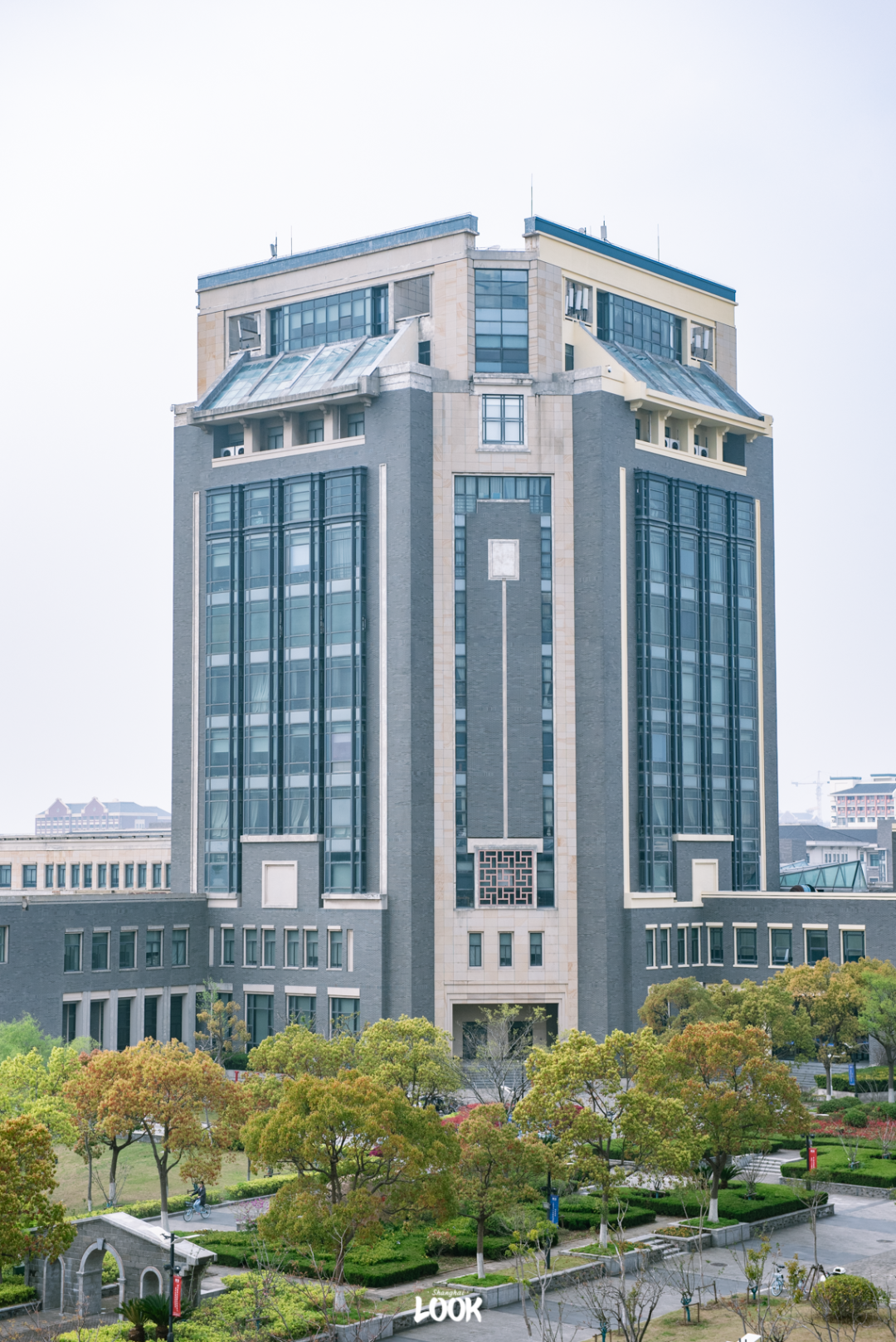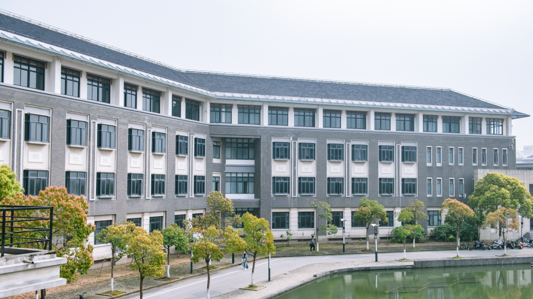 校园内的不少教学楼和学院楼都延承着江南园林的设计风格,古朴大方。而室内大面积的通透长廊,又极具现代感。