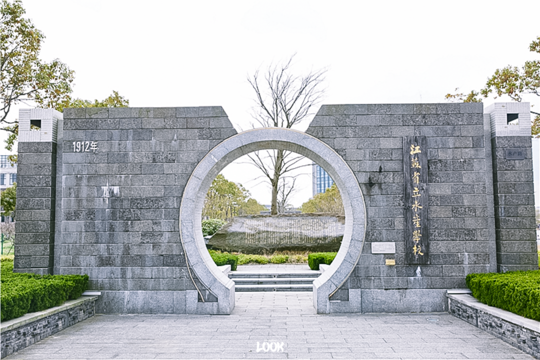 1912年创校至今,学校几经更名。靠近图书馆和教学楼处竖立了几座拱门,便是历届校门和校名。