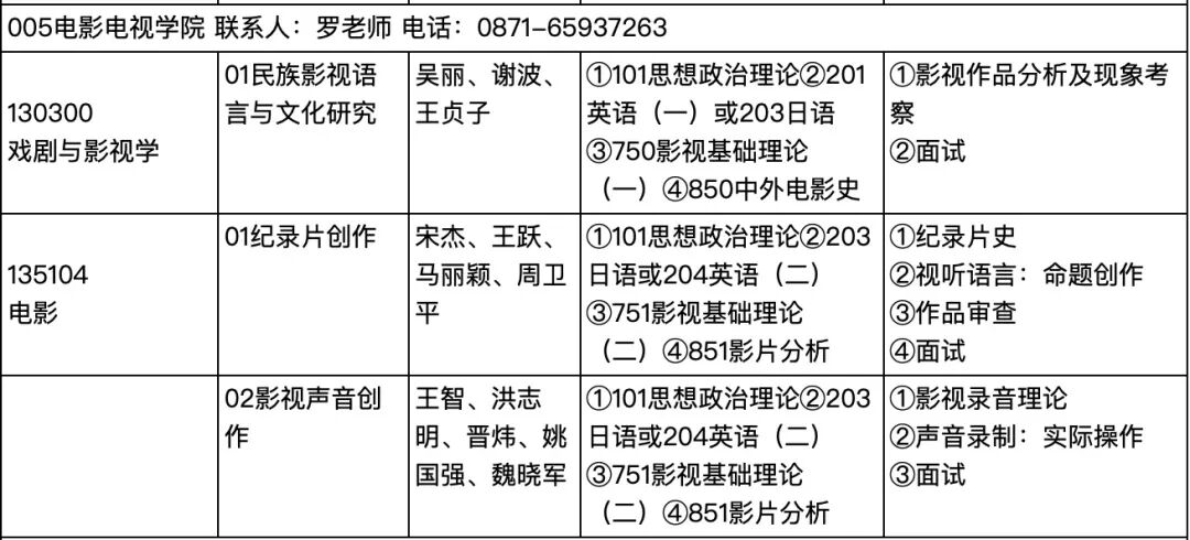 云南艺术学院 电影电视学院 招收戏剧与影视学(学硕)、电影(专硕)研究生。