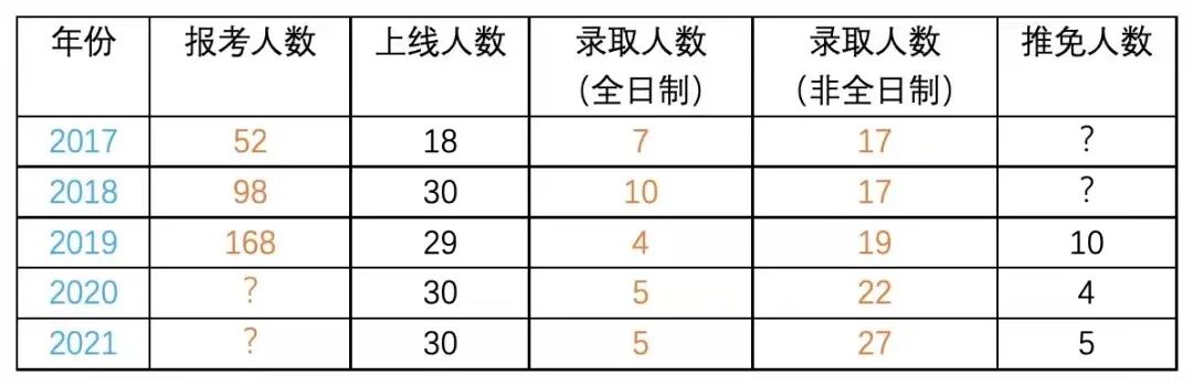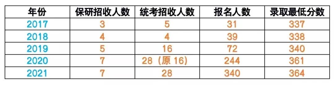 专硕则多达数十人,由于刚开始试题较为简单,招生人数多,报考人数逐年增加,21年达到了280人。同时,分数线也水涨船高,由340分涨到21年的373分。